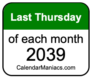 A list of last Thursdays in each month of 2039 is not all we can do. Here you can generate another list.