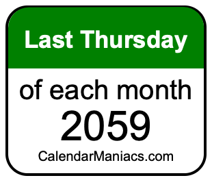 A list of last Thursdays in each month of 2059 is not all we can do. Here you can generate another list.