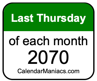 A list of last Thursdays in each month of 2070 is not all we can do. Here you can generate another list.