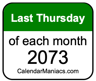 A list of last Thursdays in each month of 2073 is not all we can do. Here you can generate another list.