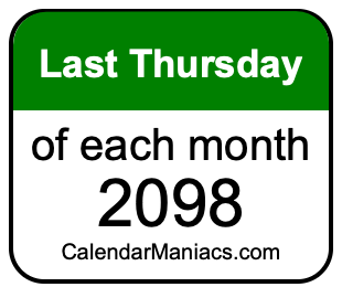 A list of last Thursdays in each month of 2098 is not all we can do. Here you can generate another list.