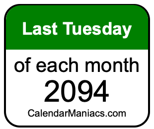 A list of last Tuesdays in each month of 2094 is not all we can do. Here you can generate another list.