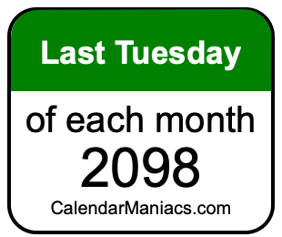A list of last Tuesdays in each month of 2098 is not all we can do. Here you can generate another list.