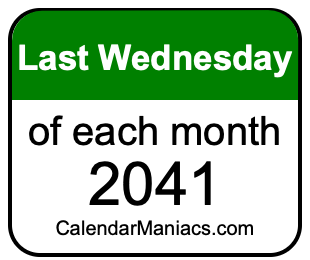 A list of last Wednesdays in each month of 2041 is not all we can do. Here you can generate another list.