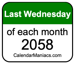 A list of last Wednesdays in each month of 2058 is not all we can do. Here you can generate another list.
