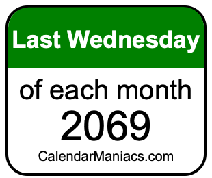 A list of last Wednesdays in each month of 2069 is not all we can do. Here you can generate another list.