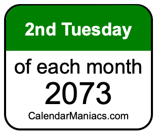 A list of second Tuesdays in each month of 2073 is not all we can do. Here you can generate another list.