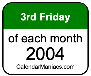 On top of that, for you calendar minimalists, we have also created a list of the 3rd Fridays of each month in 2004 in the MM/DD/YY format, as you can see below: