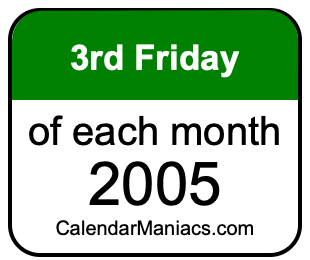 On top of that, for you calendar minimalists, we have also created a list of the 3rd Fridays of each month in 2005 in the MM/DD/YY format, as you can see below: