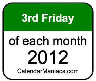 On top of that, for you calendar minimalists, we have also created a list of the 3rd Fridays of each month in 2012 in the MM/DD/YY format, as you can see below: