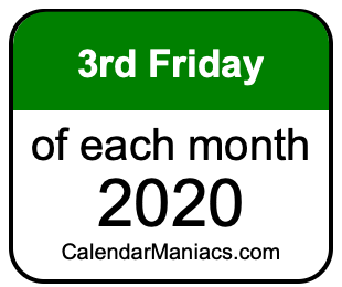 Any finally, for our visitors that use day before month in a date, here is a list of third Fridays in each month of 2020 in the DD/MM/YY format: