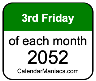 On top of that, for you calendar minimalists, we have also created a list of the 3rd Fridays of each month in 2052 in the MM/DD/YY format, as you can see below: