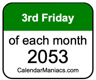 On top of that, for you calendar minimalists, we have also created a list of the 3rd Fridays of each month in 2053 in the MM/DD/YY format, as you can see below: