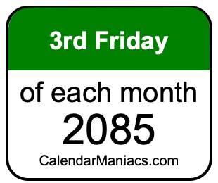 On top of that, for you calendar minimalists, we have also created a list of the 3rd Fridays of each month in 2085 in the MM/DD/YY format, as you can see below: