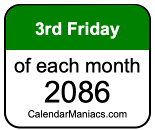 On top of that, for you calendar minimalists, we have also created a list of the 3rd Fridays of each month in 2086 in the MM/DD/YY format, as you can see below: