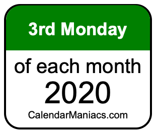 Do you need a list of the third Mondays of each month in 2020? You have come to the right place! We searched through the calendar for 2020 to find the 3rd Monday of each month in 2020. Here is the list of the third Mondays of each month in 2020 in the Weekday, Month, Day, Year format: