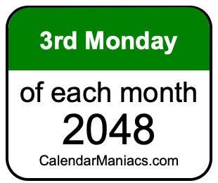 On top of that, for you calendar minimalists, we have also created a list of the 3rd Mondays of each month in 2048 in the MM/DD/YY format, as you can see below: