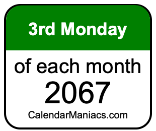 On top of that, for you calendar minimalists, we have also created a list of the 3rd Mondays of each month in 2067 in the MM/DD/YY format, as you can see below: