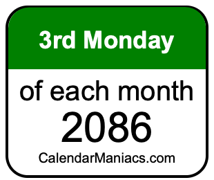 On top of that, for you calendar minimalists, we have also created a list of the 3rd Mondays of each month in 2086 in the MM/DD/YY format, as you can see below: