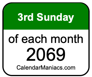 A list of third Sundays in each month of 2069 is not all we can do. Here you can generate another list.