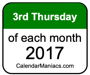 On top of that, for you calendar minimalists, we have also created a list of the 3rd Thursdays of each month in 2017 in the MM/DD/YY format, as you can see below: