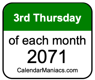 A list of third Thursdays in each month of 2071 is not all we can do. Here you can generate another list.