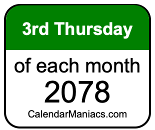 A list of third Thursdays in each month of 2078 is not all we can do. Here you can generate another list.