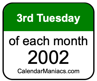 On top of that, for you calendar minimalists, we have also created a list of the 3rd Tuesdays of each month in 2002 in the MM/DD/YY format, as you can see below: