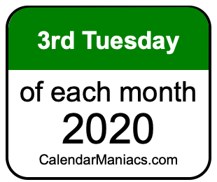 We have also created a list of the third Tuesdays of each month in 2020, in this format: Month, Day, Year.