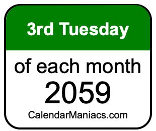 A list of third Tuesdays in each month of 2059 is not all we can do. Here you can generate another list.