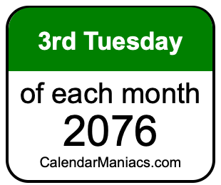 On top of that, for you calendar minimalists, we have also created a list of the 3rd Tuesdays of each month in 2076 in the MM/DD/YY format, as you can see below: