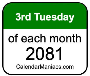 On top of that, for you calendar minimalists, we have also created a list of the 3rd Tuesdays of each month in 2081 in the MM/DD/YY format, as you can see below: