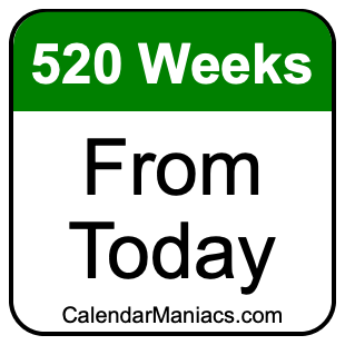 Note that there are many time zones, and the date 520 weeks from today depends on where you are. Therefore, when we calculated 520 weeks from today, we used the time and date from your computer or phone device.