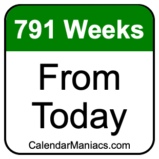 Note that there are many time zones, and the date 791 weeks from today depends on where you are. Therefore, when we calculated 791 weeks from today, we used the time and date from your computer or phone device.